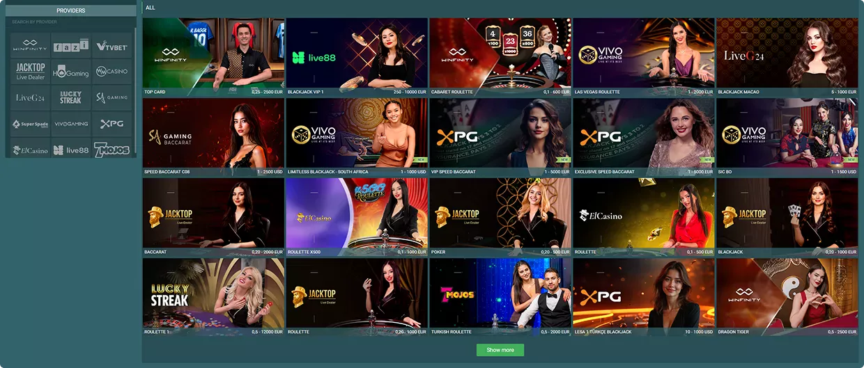 Podrás acceder a nuestras tragaperras online, juegos de mesa, ruleta en vivo, blackjack, baccarat y game